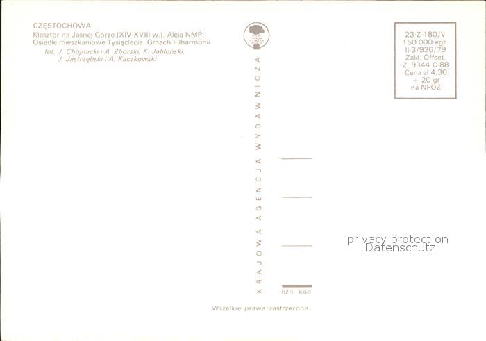 Czestochowa Schlesien Klasztor na Jasnej Gorze Aleja NMP Osiedle mieszkaniowe Tysiaclecia Gmach Filharmonii postalisch nicht gelaufen Erhaltung siehe scans