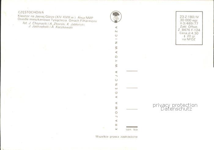 Czestochowa Schlesien Klasztor na Jasnej Gorze Osiedle mieszkaniowe Tysiaclecia postalisch nicht gelaufen Erhaltung siehe scans