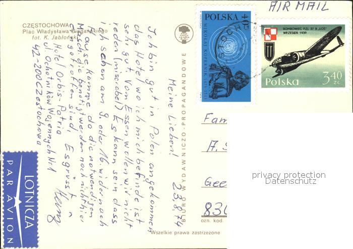 old postcard Czestochowa Schlesien Plac Wladyslawa Bieganskiego Platz Denkmal postalisch gelaufen Erhaltung siehe scans