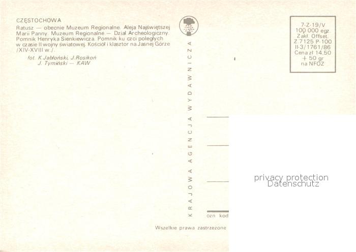 Czestochowa Schlesien Rathaus Museum Denkmal Kirche postalisch nicht gelaufen Erhaltung siehe scans [FriedD77]