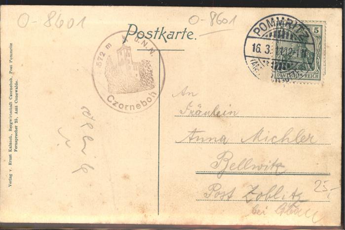 41466172 alte Postkarte Czorneboh Oberlausitz postalisch gelaufen Erhaltung siehe scans KatCode: 11110014272050