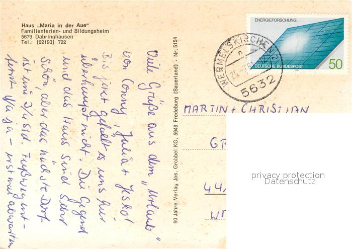 73076883 alte Postkarte Dabringhausen Haus Maria in der Aue postalisch gelaufen Erhaltung siehe scans [KathaD81] KatCode: 11110005378032