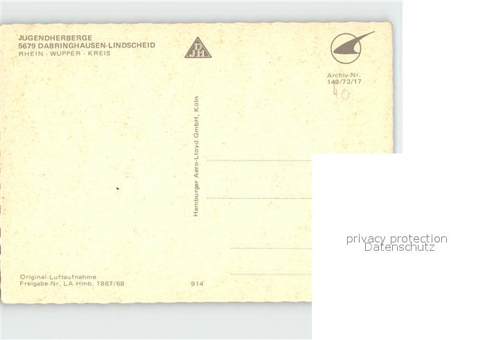 72037198 Dabringhausen Jugendherberge Fliegeraufnahme postalisch nicht gelaufen Erhaltung siehe scans KatCode: 11110005378032
