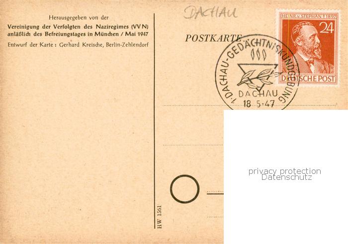 Dachau Befreiungsfeier Dachau 1947 Kuenstlerkarte Stempel Gedaechtniskundgebung