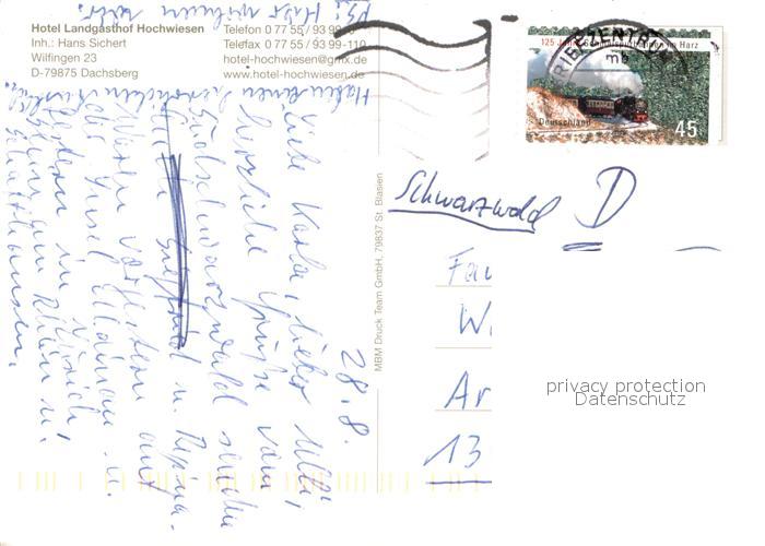 73641089 alte Postkarte Dachsberg Suedschwarzwald Hotel Landgasthof Hochwiesen Gastraum Zimmer Panorama postalisch gelaufen Erhaltung siehe scans [WerneD78] KatCode: 11110008337027