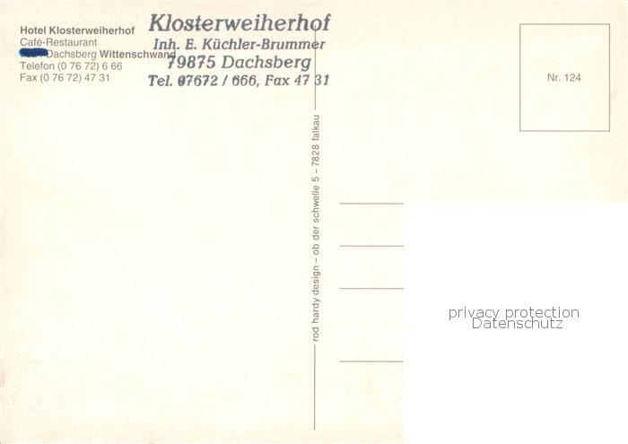 73780587 Dachsberg Suedschwarzwald Klosterweiherhof Cafe Restaurant postalisch nicht gelaufen Erhaltung siehe scans [WerneD78] KatCode: 11110008337027