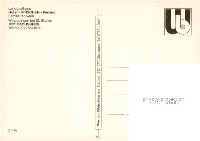 73641933 Dachsberg Suedschwarzwald Landgasthaus Hirschen Hotel Gastraeume Park postalisch nicht gelaufen Erhaltung siehe scans [WerneD78] KatCode: 11110008337027