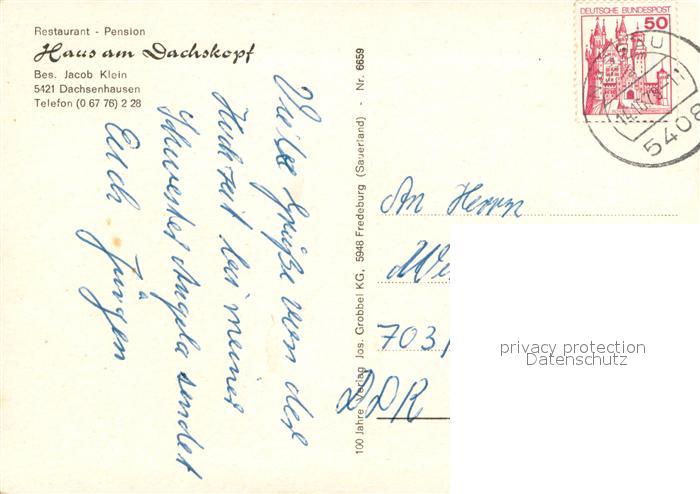 73648369 alte Postkarte Dachsenhausen Haus am Dachskopf Gastraum postalisch gelaufen Erhaltung siehe scans [WerneD78] KatCode: 11110007141023