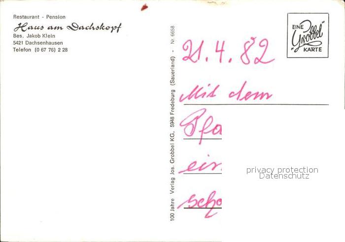 72530792 Dachsenhausen Haus am Dachskopf Restaurant Pension postalisch nicht gelaufen Erhaltung siehe scans [LiesaD40 kt094box] KatCode: 11110007141023