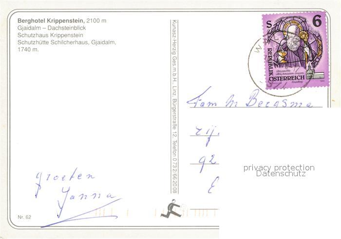 73033399 alte Postkarte Dachstein Gebirge Berghotel Krippenstein Gjaidalm Schutzhuette Schilcherhaus postalisch gelaufen Erhaltung siehe scans [PaolaD17] KatCode: 11390