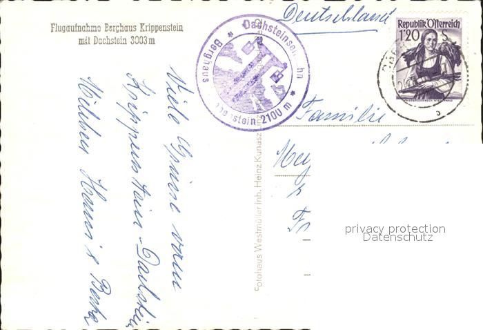 72570609 alte Postkarte Dachstein Gebirge Fliegeraufnahme Berghaus Krippenstein postalisch gelaufen Erhaltung siehe scans [AndreD76] KatCode: 11390