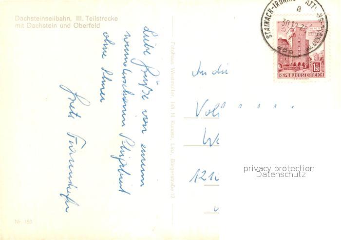 73236010 alte Postkarte Dachstein Steiermark Dachsteinseilbahn mit Oberfeld postalisch gelaufen Erhaltung siehe scans [LiesaD40] KatCode: 11390222061236