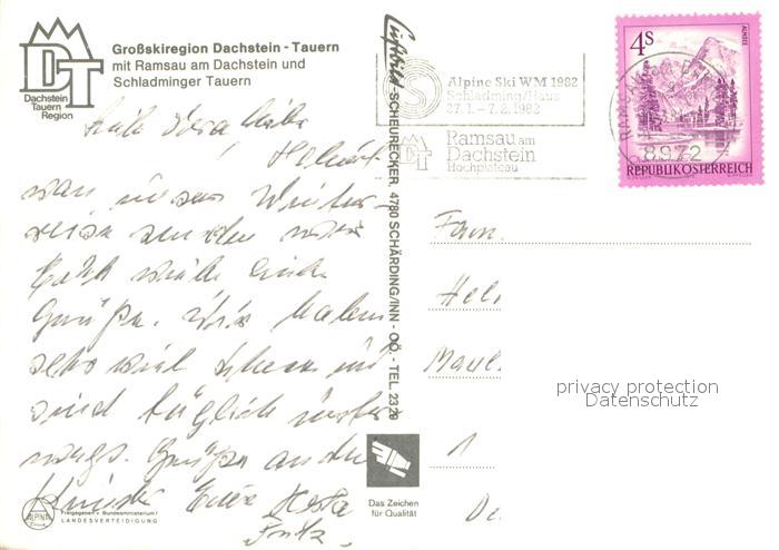 73657416 alte Postkarte Dachstein Steiermark Gross Skiregion Dachstein Tauern mit Ramsau und Schladminger Tauern postalisch gelaufen Erhaltung siehe scans [WerneD78] KatCode: 11390222061236