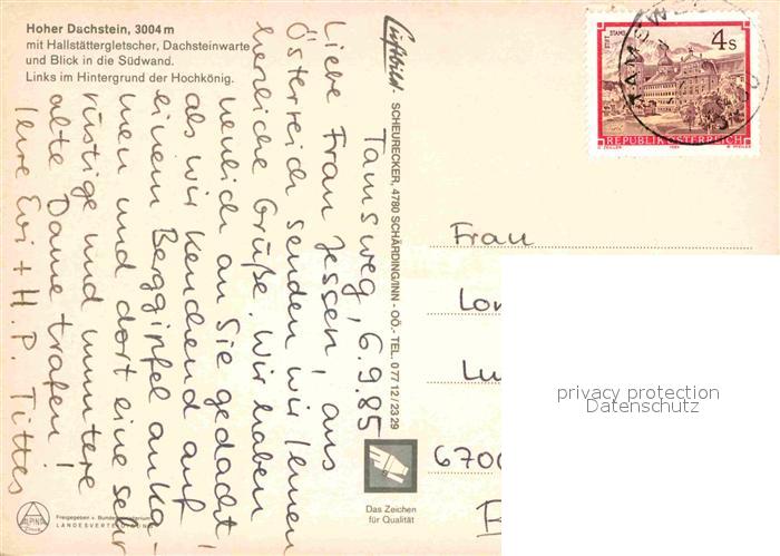 72815737 alte Postkarte Dachstein Steiermark Hoher Dachstein postalisch gelaufen Erhaltung siehe scans [AndreD76] KatCode: 11390222061236