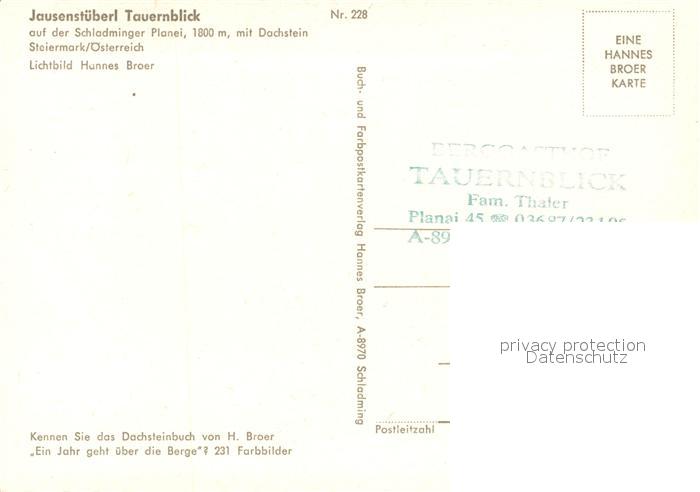 73513307 Dachstein Steiermark Jausenstueberl Tauernblick Schladminger Planei postalisch nicht gelaufen Erhaltung siehe scans [KathaD81] KatCode: 11390222061236