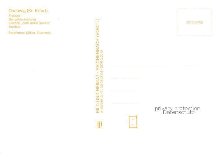 73842811 Dachwig Freibad Bungalowsiedlung Eiscafe Zum alten Back’s Stadion postalisch nicht gelaufen Erhaltung siehe scans [FriedD77] KatCode: 11110016067009