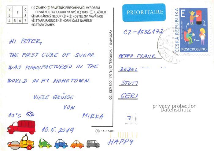 74005611 old postcard Dacice Datschitz CZ Zamek Pamatnik Pripomnajici vyrobeni prvni Klaster Mariansky Sloup Kostel sv Vavrince Stara Radnice Horni cast namesti Stary Zamek postalisch gelaufen Erhaltung siehe scans [WerneD78] KatCode: 11520