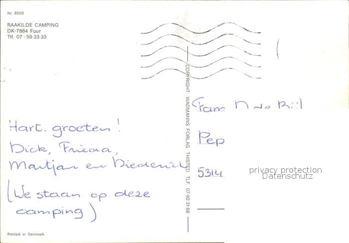 old postcard Daenemark Fliegeraufnahme Raakilde Camping Fuur postalisch gelaufen Erhaltung siehe scans