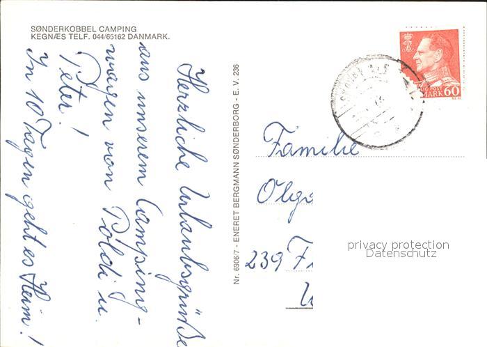 old postcard Daenemark Fliegeraufnahme Soenderkobbel Kegnes Telf postalisch gelaufen Erhaltung siehe scans