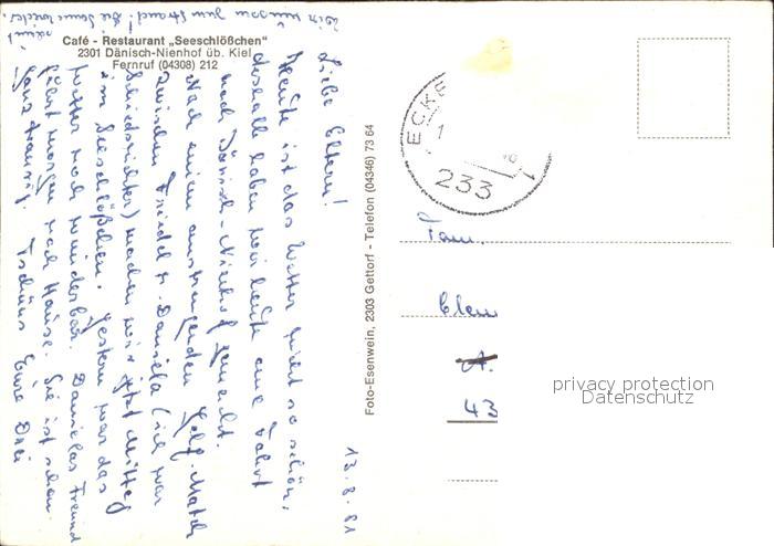 72109603 alte Postkarte Daenisch-Nienhof Cafe Restaurant Seeschloesschen postalisch gelaufen Erhaltung siehe scans KatCode: 11110001002000