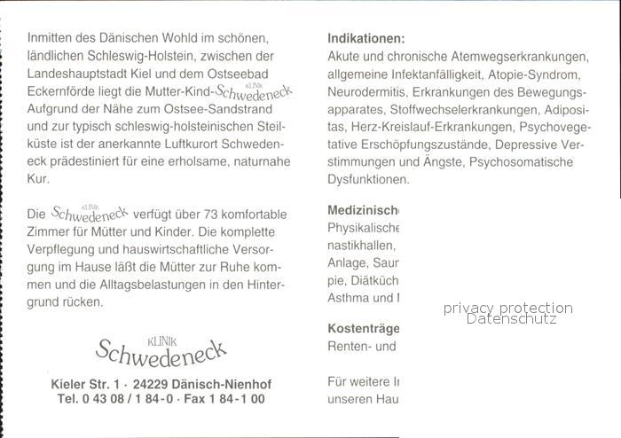 72567207 Daenisch-Nienhof Klinik Schwedeneck postalisch nicht gelaufen Werbekarte (keine Postkarte) Erhaltung siehe scans [LiesaD40] KatCode: 11110001002000