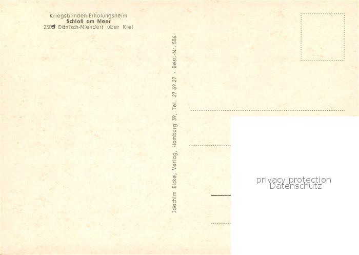 73743247 Daenisch-Nienhof Kriegsblinden Erholungsheim Schloss am Meer postalisch nicht gelaufen Erhaltung siehe scans [FriedD77] KatCode: 11110001002000