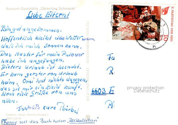 73653752 alte Postkarte Daenkritz Konsum Gaststaette Daenkritzer Schmiede Gartenrestaurant postalisch gelaufen Erhaltung siehe scans [FriedD77] KatCode: 11110014193300