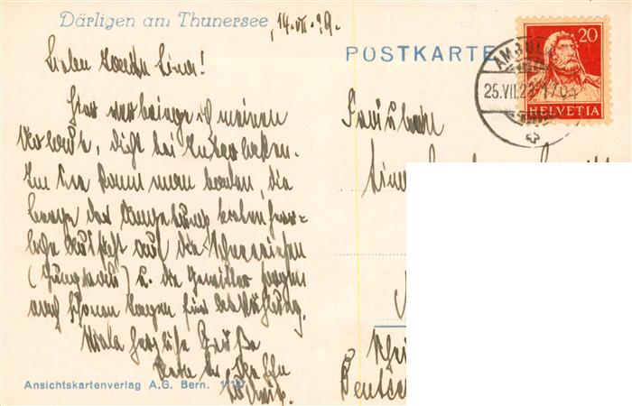 13940640 alte Postkarte Daerligen Thunersee BE Panorama postalisch gelaufen Erhaltung siehe scans [WerneD78] KatCode: 11470060175246