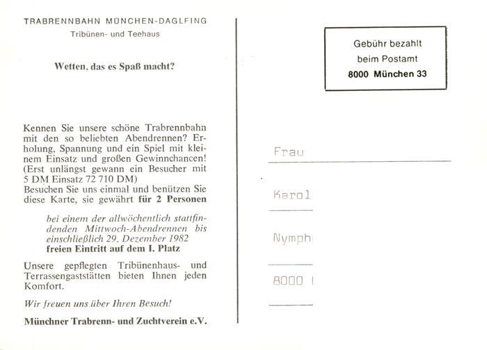 73894027 Daglfing Muenchen Trabrennbahn bei Nacht postalisch nicht gelaufen Erhaltung siehe scans [FriedD77] KatCode: 11110009162000