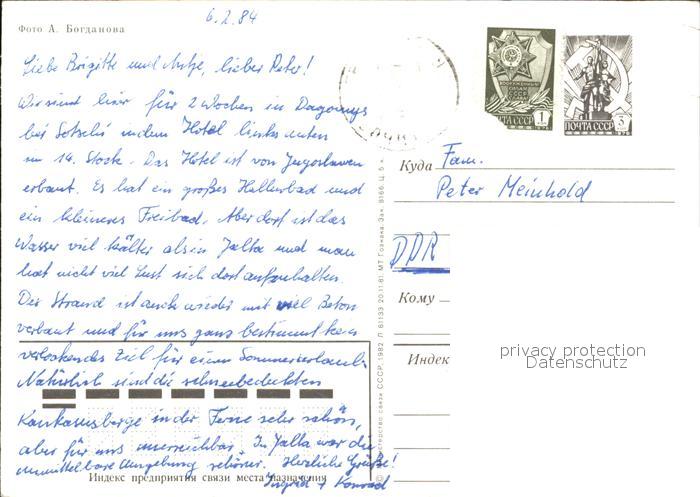 old postcard Dagomys Hotel Inturist Olimpijskaja Camping Dagomys postalisch gelaufen Ganzsache (eingedruckte Briefmarke) Erhaltung siehe scans