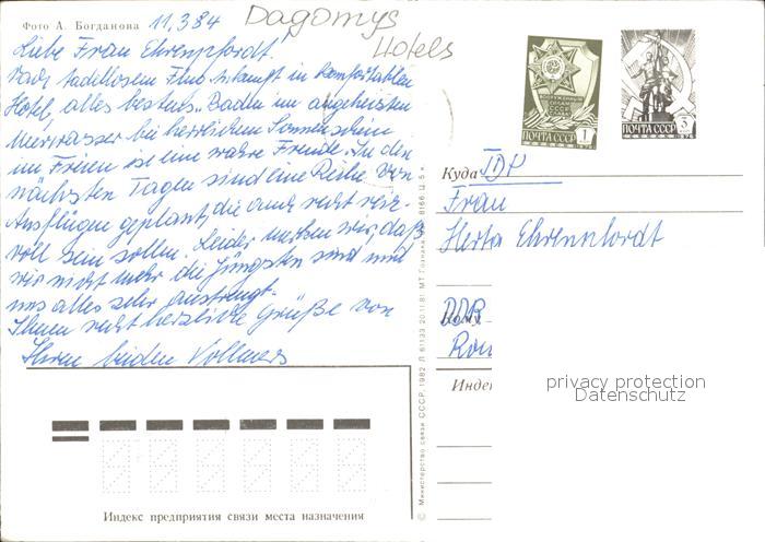 old postcard Dagomys Hotels postalisch gelaufen Ganzsache (eingedruckte Briefmarke) Erhaltung siehe scans