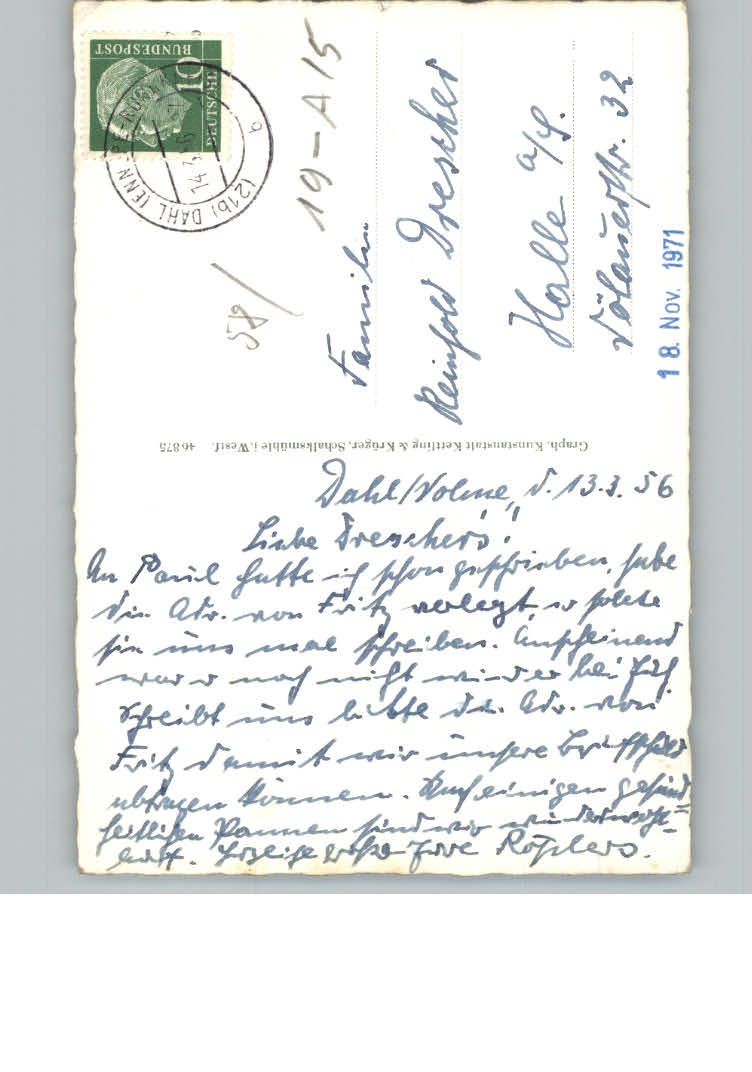 31140878 Dahl Hagen postalisch nicht gelaufen KatCode: 11110005914000