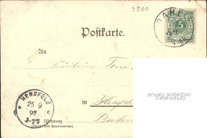 31727809 alte Postkarte Dahl Hagen Litho Gasthof zur Post Kaiser Friedrich Denkmal postalisch gelaufen Erhaltung siehe scans KatCode: 11110005914000
