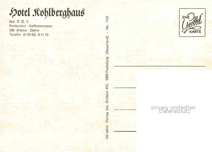 72893307 Dahle Altena Fliegeraufnahme Hotel Kohlberghaus Burg Seifersee Moehnsee postalisch nicht gelaufen Erhaltung siehe scans [AndreD76] KatCode: 11110005962004