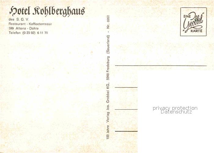 72893306 Dahle Altena Fliegeraufnahme Hotel Kohlberghaus postalisch nicht gelaufen Erhaltung siehe scans [AndreD76] KatCode: 11110005962004
