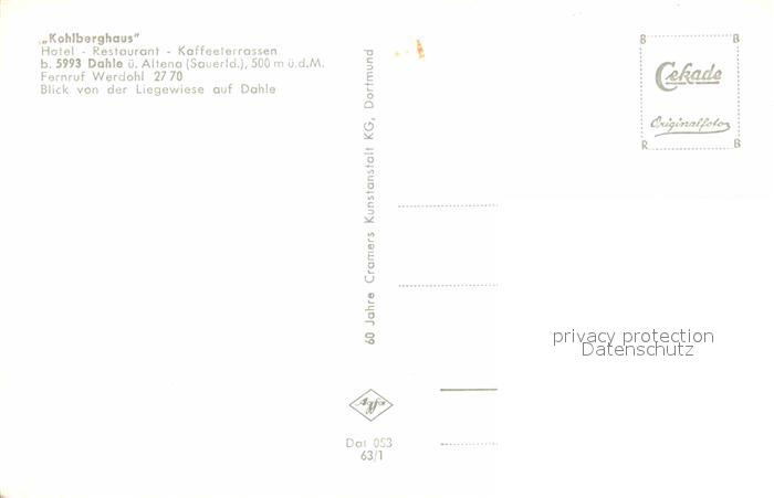 72893217 Dahle Altena Hotel Kohlberghaus postalisch nicht gelaufen Erhaltung siehe scans [KathaD81] KatCode: 11110005962004
