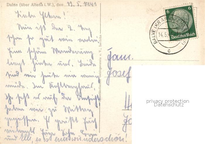 73163069 alte Postkarte Dahle Altena Kohlberghaus postalisch gelaufen Erhaltung siehe scans [WerneD78] KatCode: 11110005962004