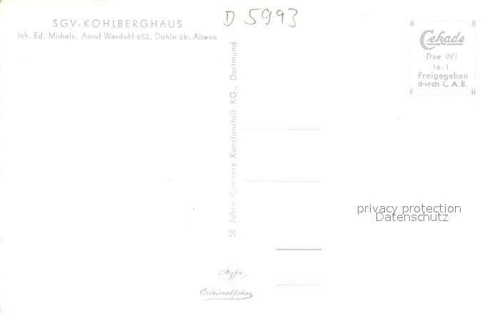 73692177 Dahle Altena Kohlberghaus Hotel Fliegeraufnahme postalisch nicht gelaufen Erhaltung siehe scans [WerneD78] KatCode: 11110005962004