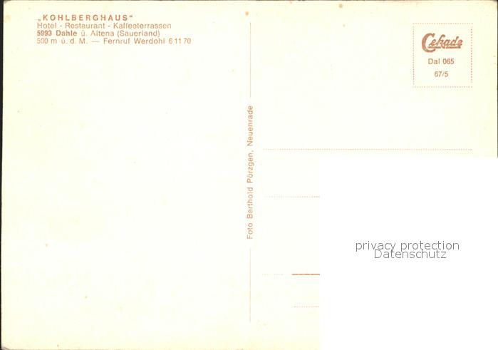 72296419 Dahle Altena Kohlberghaus Hotel Restaurant Kaffeeterrasse postalisch nicht gelaufen Erhaltung siehe scans KatCode: 11110005962004
