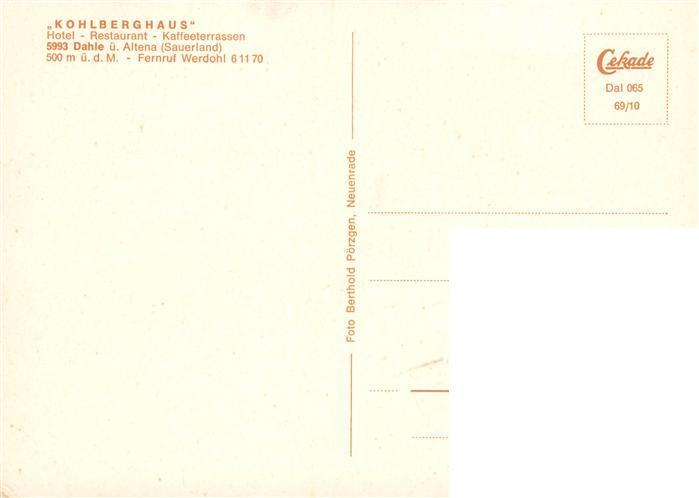 73885265 Dahle Altena Kohlberghaus Hotel Restaurant Kaffeeterrassen postalisch nicht gelaufen Erhaltung siehe scans [WerneD78] KatCode: 11110005962004
