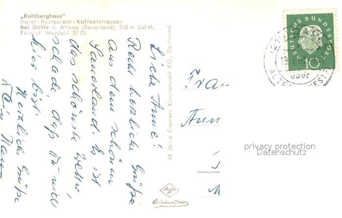 73714100 alte Postkarte Dahle Altena Kohlberghaus Hotel Restaurant postalisch gelaufen Erhaltung siehe scans [FriedD77] KatCode: 11110005962004