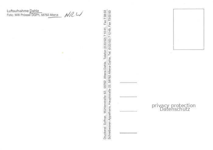 74105202 Dahle Altena NRW Ansicht mit Kirche postalisch nicht gelaufen Fliegeraufnahme Erhaltung siehe scans [FriedD77] Fliegeraufnahme Frie Katcode 11110005962004