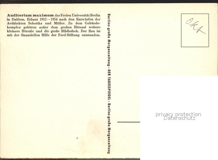 72120192 Dahlem Berlin Auditorium Maximum der Freien Universitaet Berlin postalisch nicht gelaufen Erhaltung siehe scans KatCode: 11110011000000