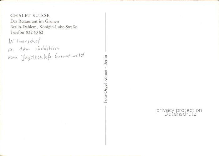 72548895 Dahlem Berlin Chalet Suisse Restaurant postalisch nicht gelaufen Erhaltung siehe scans [LiesaD40 kv021box] KatCode: 11110011000000