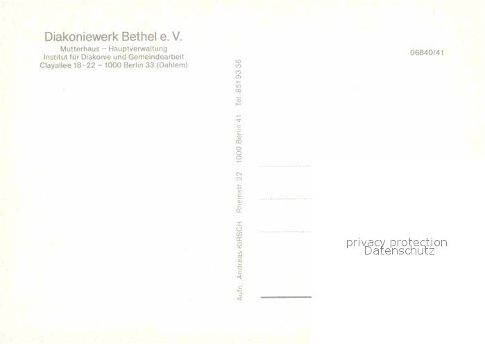 72825997 Dahlem Berlin Diakoniewerk Bethel postalisch nicht gelaufen Erhaltung siehe scans [AndreD76] KatCode: 11110011000000
