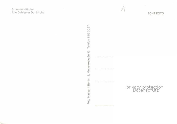 72865468 Dahlem Berlin St Annen Kirche Alte Dahlemer Dorfkirche postalisch nicht gelaufen Erhaltung siehe scans [FriedD77] KatCode: 11110011000000