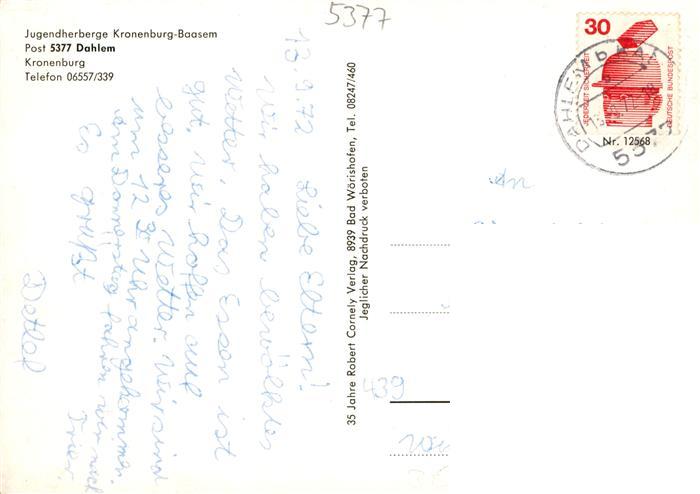 73884213 alte Postkarte Dahlem Kall Jugendherberge Kronenburg Baasem postalisch gelaufen Erhaltung siehe scans [FriedD77] KatCode: 11110005366012