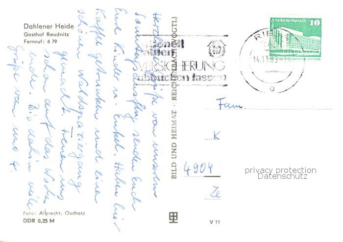 72927463 alte Postkarte Dahlen Sachsen Dahlener Heide Gasthof Reudnitz postalisch gelaufen Erhaltung siehe scans [LiesaD40] KatCode: 11110014389080