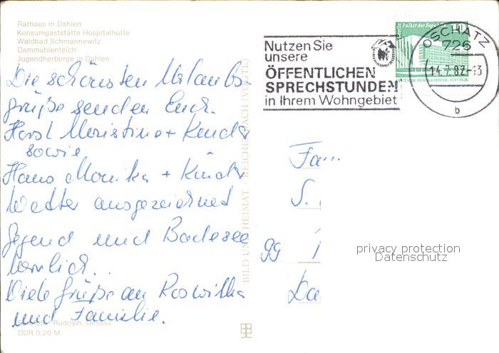72543055 alte Postkarte Dahlen Sachsen Rathaus Hospitalhuette Waldbald Schmannewitz Dammuehlenteich postalisch gelaufen Erhaltung siehe scans [KathaD75 kv015box] KatCode: 11110014389080