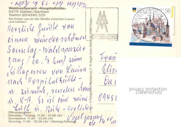 73859960 Dahlen Sachsen Waldrestaurant Hospitalhuette Rutschbahn Terrasse postalisch gelaufen Erhaltung siehe scans [WerneD78] alte Postkarte Wern Katcode 11110014389080